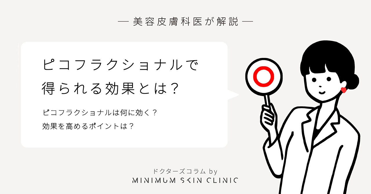 ピコフラクショナルは、高密度なピコレーザー(ピコ秒で照射されるレーザー)を肌の深部まで照射します。肌の深部にレーザーを照射することで、コラーゲン・エラスチンを増やし、肌の活性化を促します。肌の再生力を高めることで、ニキビ跡・クレーター、毛穴の開き、ハリ・ツヤなどの肌質改善へ効果を発揮します。